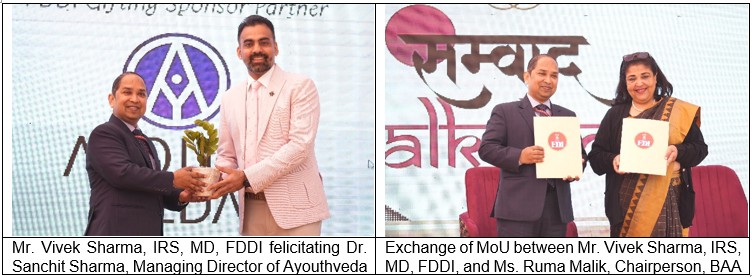 A notable Memorandum of Understanding (MoU) was signed between Mr. Vivek Sharma, IRS, MD, FDDI, and Ms. Ruma Malik, Chairperson, Buying Agents Association (BAA), to collaborate on student development initiatives such as internships and placements, faculty and curriculum support through industry-led workshops and industry-readiness modules, and the organization of joint national seminars and conclaves to further strengthen industry–academia engagement.