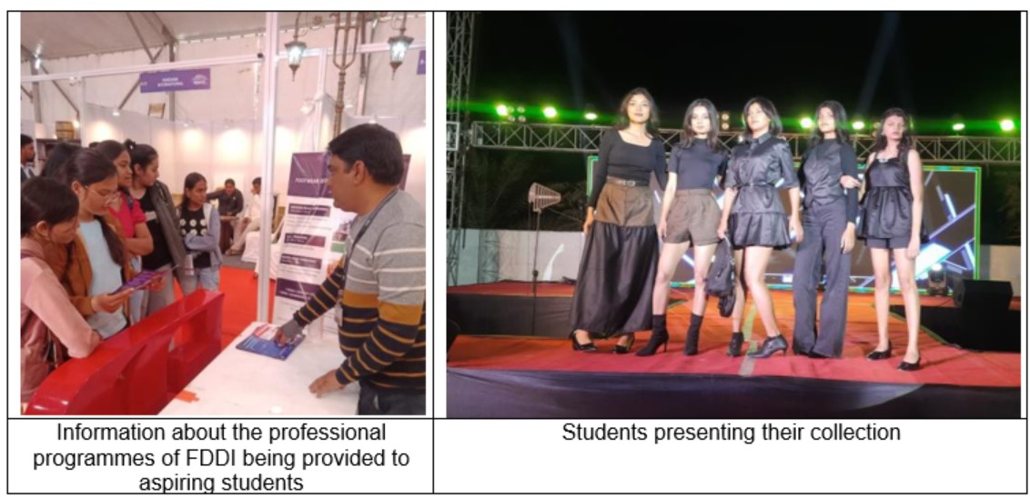 The campus further added vibrancy to the Expo with a fashion showcase organised by EPCH on 18th January 2026, featuring innovative student creations inspired by India’s rich handicraft heritage. Blending traditional craftsmanship with contemporary design, the showcase highlighted FDDI’s commitment to design excellence and industry relevance, as young designers confidently connected tradition with trend on a prestigious platform.