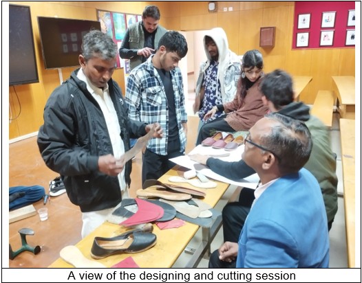 The workshop familiarized students with age-old techniques, tools, and processes involved in making Nagra, including material selection, pattern cutting, hand stitching, sole preparation, shaping, and finishing, while highlighting the cultural significance of this craft.