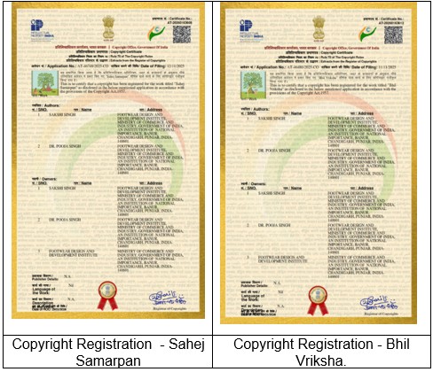 Dr. Pooja Singh, Faculty, School of Fashion Design (FD), FDDI, Chandigarh (Banur) campus, along with Ms. Sakshi Singh, student, FD 2021 Batch has been granted Copyright Registration under the Copyright Act, 1957 for their original artistic works titled “Sahej Samarpan” and “Bhil Vriksha.” Both works were officially entered in the Register of Copyrights on 29 January 2026.