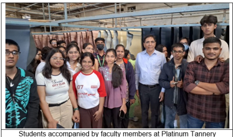During the visit, students received detailed insights into leather processing, tanning techniques, quality control measures, and sustainable practices adopted by the tannery. Industry experts interacted with the students, offering practical perspectives on manufacturing processes and prevailing industry standards.