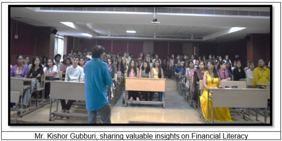 The session was delivered by industry expert Mr. Kishor Gubburi, who shared valuable insights through a simple, practical, and engaging approach. His interactive and light-hearted presentation helped students clearly understand the importance of financial literacy and investment awareness, making the session highly relevant and impactful for young investors.