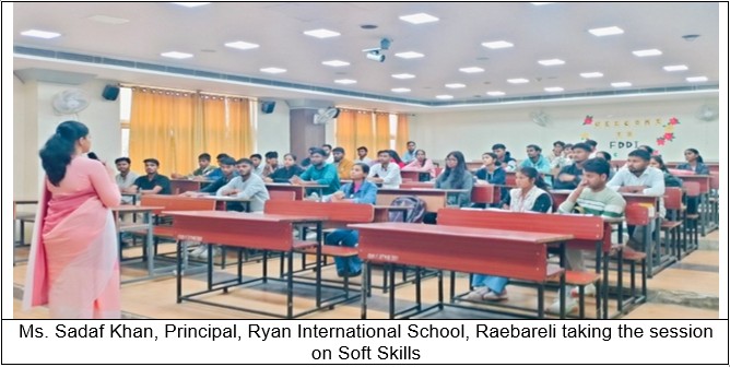 FDDI Fursatganj organized an expert session on “Soft Skills” on 21st November 2025 with the aim of enhancing students’ overall personality and employability skills. The session was conducted by Ms. Sadaf Khan, Principal, Ryan International School, Raebareli, who shared valuable insights drawn from her rich academic and administrative experience.