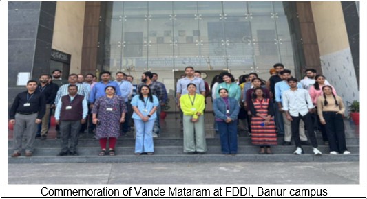 As part of the nationwide commemoration launched by the Ministry of Culture, Government of India, to mark 150th years of “Vande Mataram” (1875–2025), FDDI organized a Mass Singing of “Vande Mataram” across its Head Office and all 12 campuses—Noida, Fursatganj, Chennai, Kolkata, Rohtak, Chhindwara, Jodhpur, Patna, Ankleshwar, Hyderabad, Banur, and Guna.