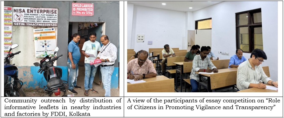 At the FDDI Kolkata Campus, Vigilance Awareness Week was celebrated under the theme “Vigilance: A Shared Responsibility.” The observance focused on fostering integrity, transparency, and anti-corruption awareness among employees and students. The Integrity Pledge was administered to all, reaffirming their dedication to honesty and ethical conduct in both official and personal dealings. An awareness session on preventive vigilance was conducted, highlighting the importance of maintaining accountability, adhering to due procedures, and identifying early warning signs of malpractice. An essay competition on “Role of Citizens in Promoting Vigilance and Transparency” encouraged students to reflect on individual responsibility in building a corruption-free society, while employees actively participated in a slogan-writing activity that generated impactful messages promoting vigilance and ethical behavior. As part of community outreach, faculty and staff distributed informative leaflets in nearby industries and factories to spread awareness about ethical practices, the impact of corruption, and the need for collective action to promote transparency. The week-long observance effectively strengthened awareness on vigilance, ethics, and responsible conduct across the campus community.